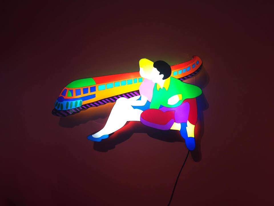 Circa 40 opere di cui molte di recente produzione costituiscono la mostra Réclame, che in origine significava chiamata, ed è un vero richiamo a guardarle accendersi e illuminare pareti o finestre come quando Lodola decorò di luce con le sue sculture la Cà d’Oro di Venezia per la 54° edizione della Biennale.
