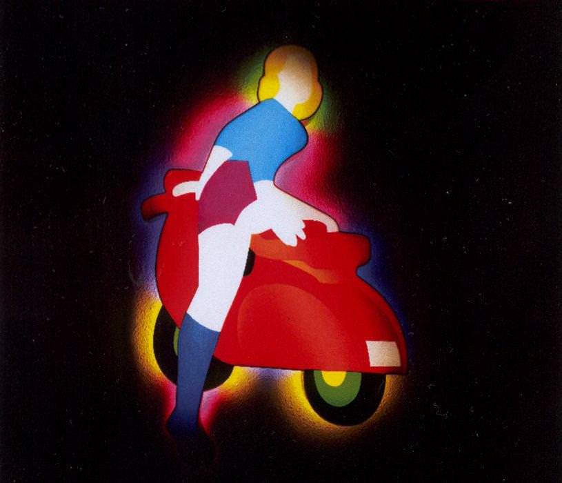 I soggetti "lodoliani", i giocattoli luminosi, come ama chiamarli l'Artista, hanno come tematica le vespine con i ragazzi abbracciati, le automobiline che sfrecciano luminose ed illuminanti, la mela che racchiude come in un incantesimo i mitici Beatles, Jim Morrison, una splendida porsche viola che fa sognare uomini e donne che rimangono affascinati da questo soggetto di culto rivisitato da Lodola per l'occasione.