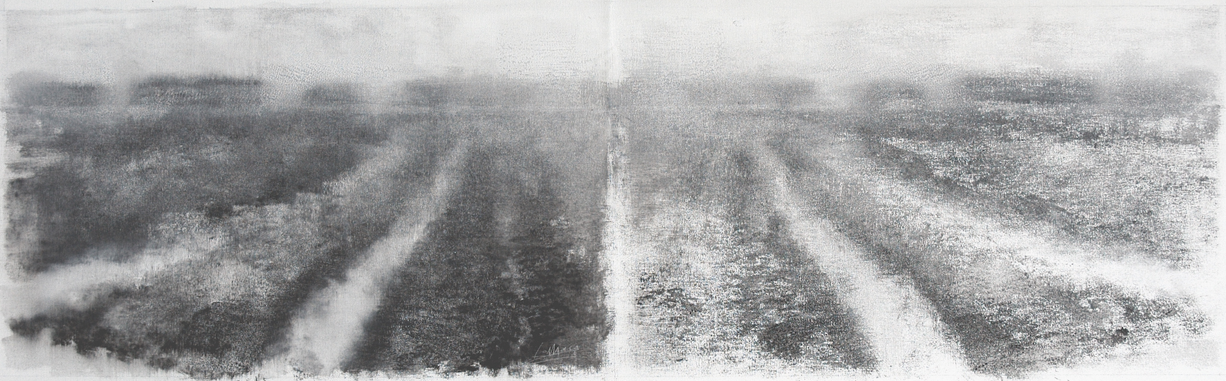 “Nelle opere di Marco Longo lo spazio bianco è funzionale alla creazione degli orizzonti a cui volge lo sguardo, frammenti di piani che sbiadiscono nell’assenza di superficie. Una ricerca stilistica che l’artista ha affinato negli anni, lavorando direttamente sulla trama della tela per sovrapposizioni monocromatiche, declinate sull’intensità dei bianchi, dei neri e dei bruni nelle diverse tonalità delle terre d’ombra. […]