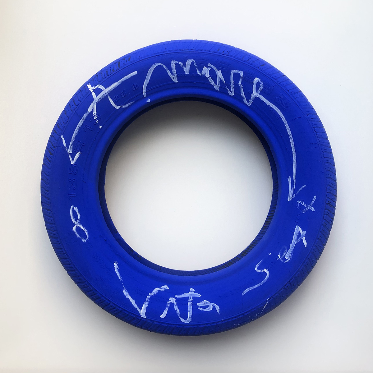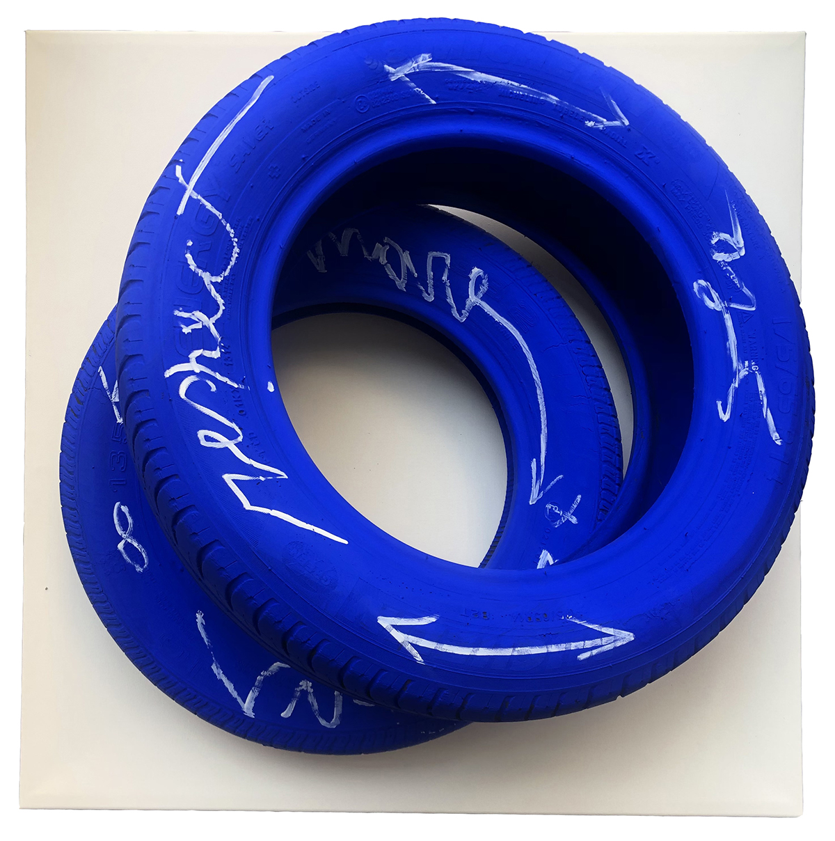 Una gondola con reperti recuperati in mare (la maggior parte vecchi pneumatici) e dipinti da Rotelli con pigmenti colore blu oltremare sarà nella sala centrale.