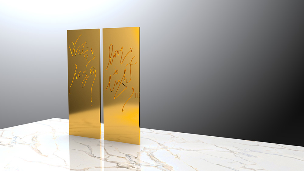 “L’installazione di Rotelli vuole essere un paradosso, una provocazione, dove arte e design si uniscono per portare un messaggio di pace”, sottolinea Celia Stefania Centonze, partner di Ever in Art, società che ha prodotto il concept. “Sulla soglia, spazio reale e metaforico, si svolge infatti una metamorfosi: il portale diventa un varco, un luogo di passaggio verso un mondo migliore, dove l’amore vince la guerra, vince su tutto”.
