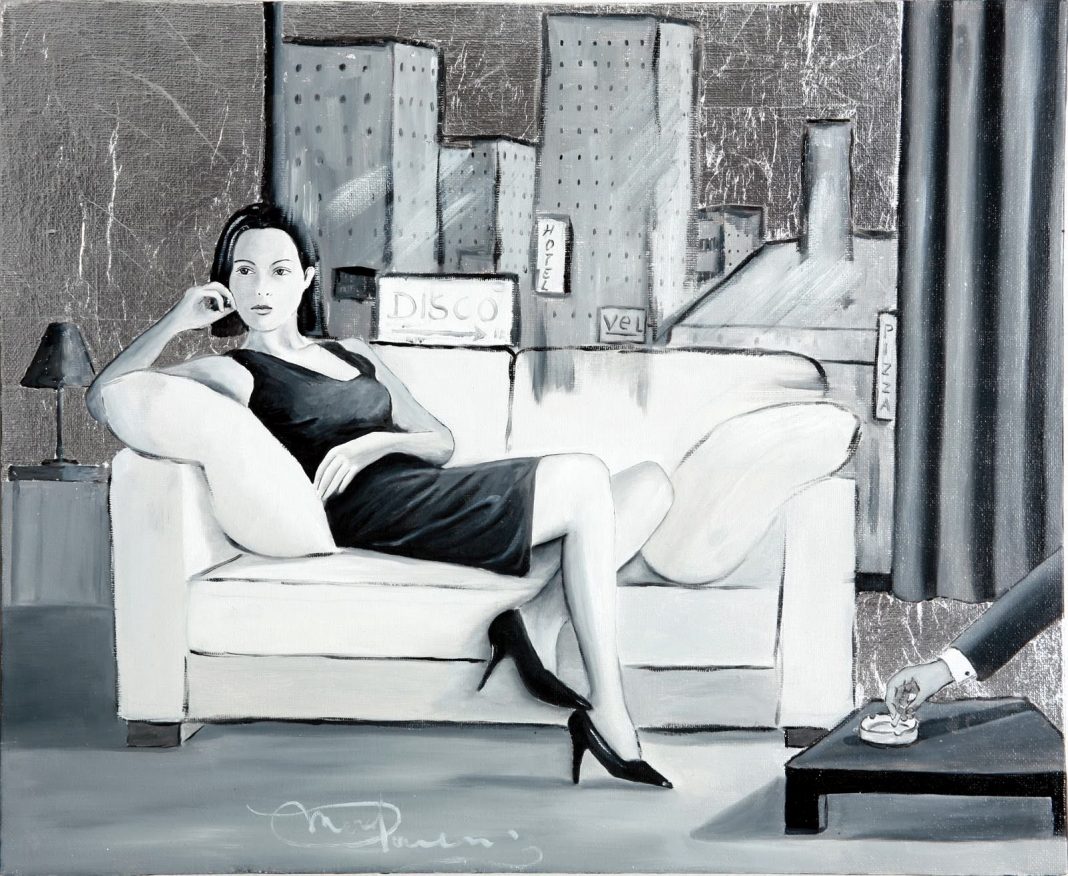 la mostra: una ventina di opere in bianco e nero, con tecnica olio su tela,