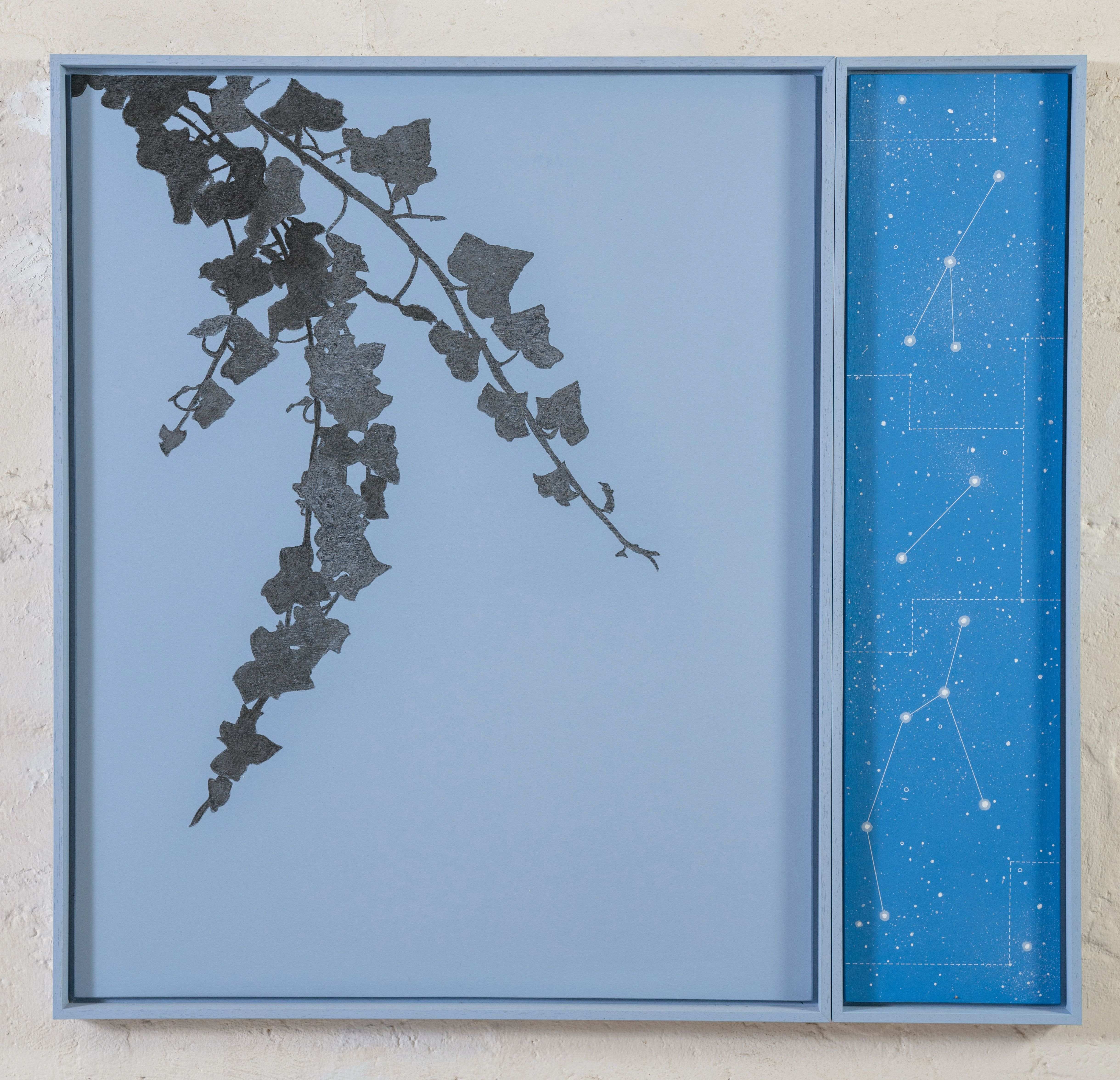 Quattro, fra le tante, sono le componenti che nella mostra di Marco Pellizzola VIAGGIO CELESTE maggiormente risaltano, quali portanti una narrazione che giunge da lontano: il firmamento costellato, le ombre, in questo caso di essenze arboreo-floreali, l’azzurro e il viaggio spazio-temporale.