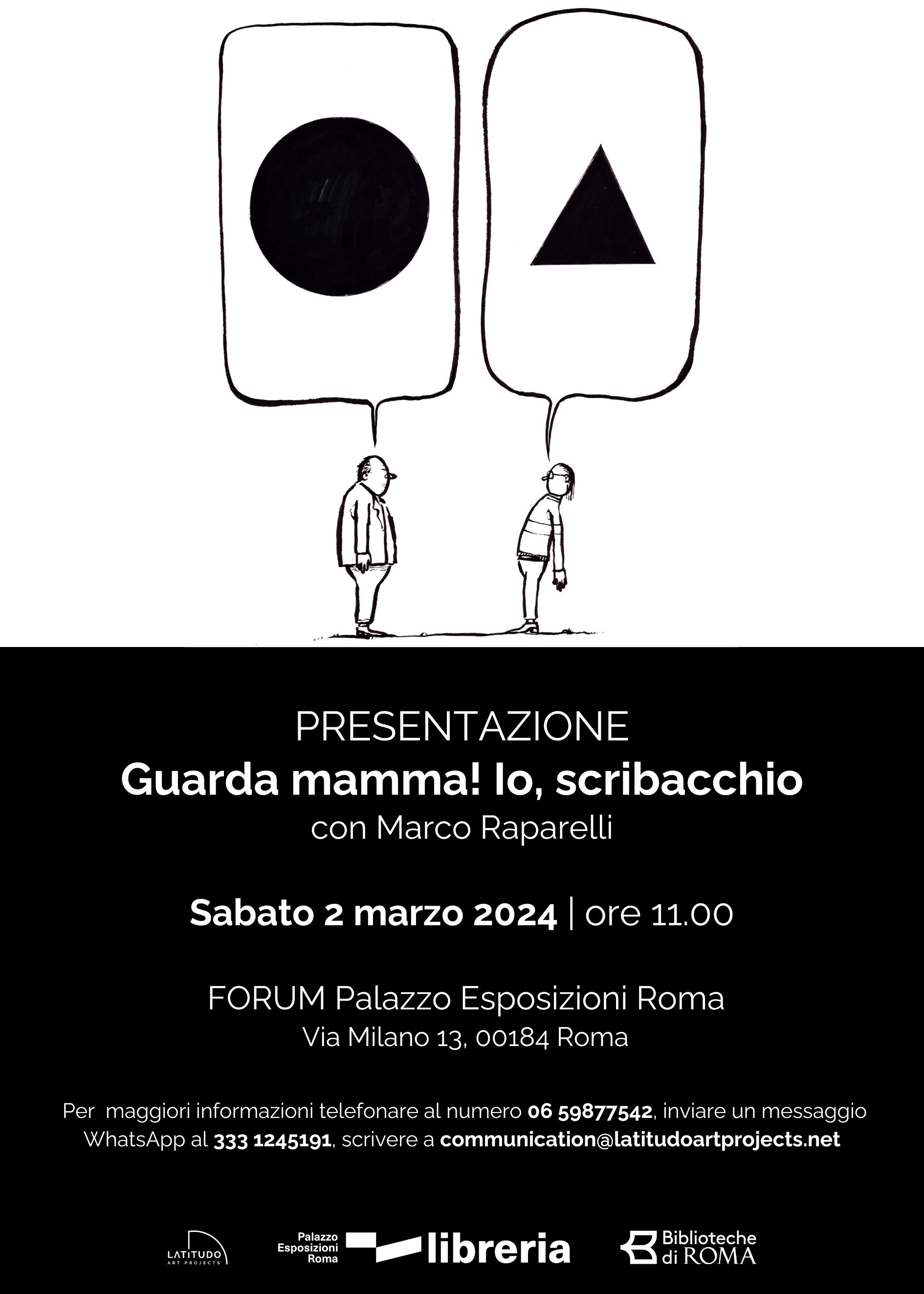 Sabato 2 marzo, dalle ore 11:00, l’artista e illustratore Marco Raparelli presenta la pubblicazione “Guarda mamma! Io, scribacchio” nato dal progetto multidisciplinare 15LAB svolto presso la Biblioteca Galline Bianche di Roma. L’evento si terrà nello spazio Forum di Palazzo delle Esposizioni.