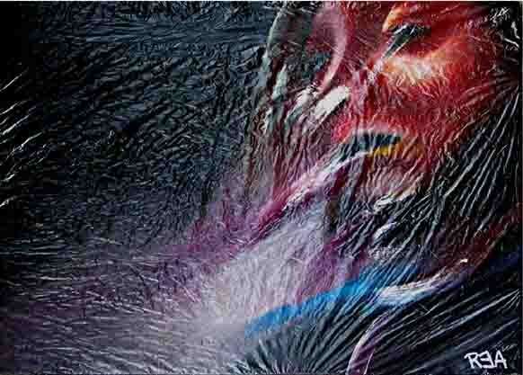 L’espressività di Van Gogh, la dolcezza delle tahitiane di Gauguin, l’inquietudine dell’espressionismo austriaco, l’armonia dell’ Art Nouveau e la passione di Schiele e Bacon. Questi sono gli ingredienti a cui tende l’arte di Marco Rea, un’ arte che esprime una personalità emozionata, in continua fibrillazione, sempre tesa alla ricerca della sua perfezione, quella che ha nella mente quando sente l’ispirazione, quella che è affidata al caso quando poggia il pennello sulla tela. Non c’è niente di freddo e ragionato nei suoi dipinti, tutto nasce da una forza e una sensibilità interiore focalizzata specialmente nella rappresentazione dei volti femminili. Volti che perdono i contorni della realtà, che si materializzano nel vuoto e, come sotto un effetto ipnotico, attirano totalmente l’attenzione trasmettendo un vago sentore di sublime inquietudine. Poi Rea soffoca le sue donne. Sulla tela pone una busta trasparente, quella usata per conservare i cibi. Pone un filtro, rende i suoi soggetti inaccessibili, inafferrabili, moltiplica la distanza tra noi e loro, tra noi e lui. “Stifling”, soffocamento, una tecnica che potenzia l’effetto plastico e dinamico della tela, una tecnica che tanto ricorda le plastiche di Burri.
