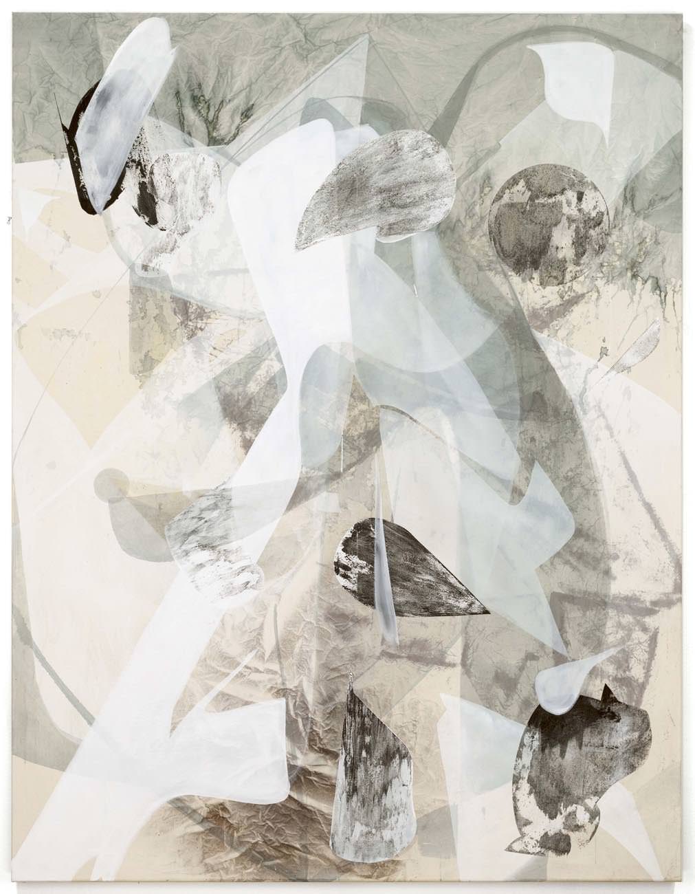 Nelle tele di grande formato esposte in mostra, si evidenzia il dialogo dicotomico tra i tocchi spontanei ad inchiostro o acrilico, l’uso dello spray, le pennellate nate dal libero arbitrio dell’artista e forme più geometriche, calcolate, dal ritmo regolare, linee che abitano la superficie dell’opera e che ci appaiono nel tratto quasi meccaniche poiché ottenute dall’utilizzo di media digitali.