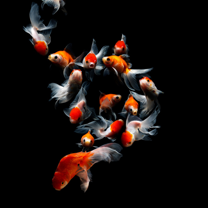 Com’è d’abitudine nel suo lavoro, la serie “Ballet” presenta immagini elusive e seducenti che sono il frutto di un lungo e complesso processo di realizzazione, a partire dalle centinaia di scatti dal vivo di rare specie di pesci e fauna marina tropicali, che poi vengono pazientemente e “pittoricamente” giustapposti, assemblati e fusi insieme. Come scrive Gianluca Ranzi nel testo in catalogo, l’immagine finale che risulta da questo meticoloso quanto fantasioso lavoro riesce ad evocare l’aspetto realistico dell’animale, ma al contempo diviene anche qualcosa di completamente altro, una composizione che, attraverso la brillantezza dei colori, la magia delle forme e dei pattern di righe, delle macule e delle geometrie che spiccano sul fondo nero, assume un sapore onirico e conturbante.