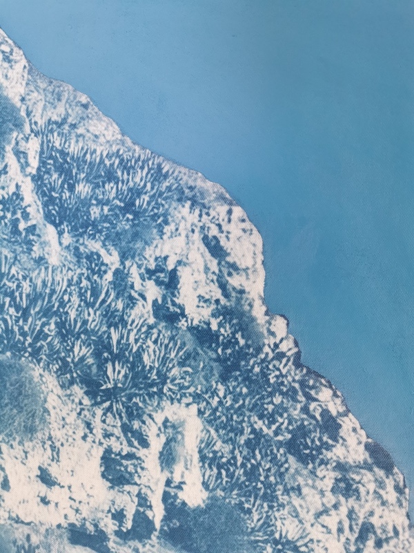 L’approccio dell’artista si distingue per la capacità di coniugare tecniche fotografiche tradizionali, come la cianotipia e la stampa ai sali d’argento, con materiali diversi come tela, vetro e acciaio. Il suo lavoro si sviluppa in un dialogo tra passato e presente, tra natura e artificio, dove il blu – colore iconico della sua poetica – si intreccia con le tonalità ocra del paesaggio lucano. In questo racconto visivo, la terra incontra il mare che un tempo sommerse la regione nel periodo Cretaceo, restituendo un gioco di emersioni e scomparse, di tracce rivelate e memorie celate dal tempo.