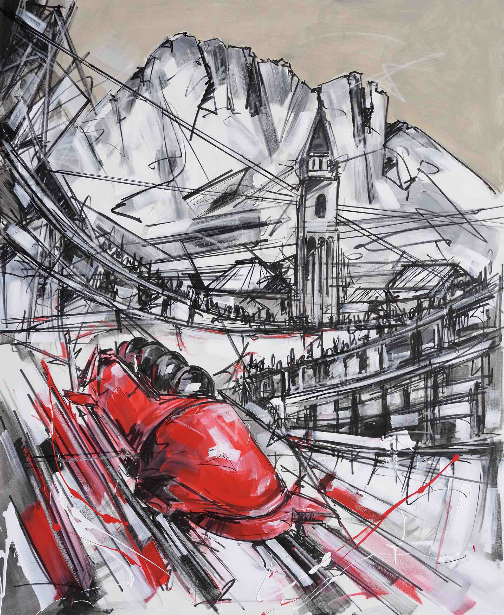 Il progetto espositivo concepito dall’artista riunisce una serie di opere inedite che hanno come filo conduttore il rapporto tra Arte e Sport, con alcune città italiane e gli sport olimpici invernali come protagonisti della pittura.