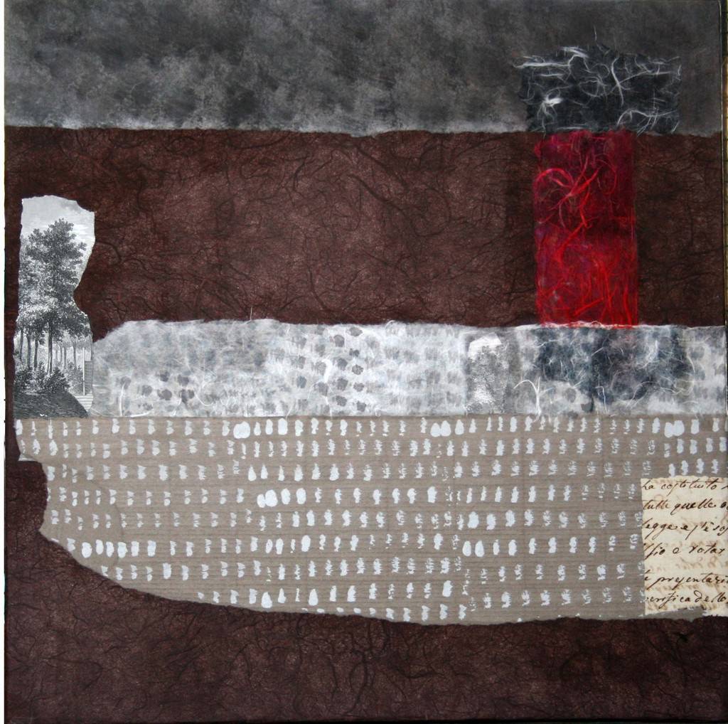 Marco Tancredi, mischiando tecniche e innestando altri corpi e frammenti di carta, lavora di colpi di sonda a far affiorare dal fondo memorie perdute, tra luminose piogge ritmiche di graffiti e filamenti rapidi e guizzanti, o improvvise ferite, come lampi e fulmini del profondo ancestrale. Sul fondo stanno carte trovate d’archivi settecenteschi, da decifrare…