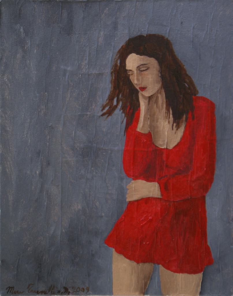 Non a caso l’altra faccia di questa stessa riflessione sono i piccoli quadri ispirati alle ragazze-copertina, le bambine cresciute inseguendo il mito dell’apparire, cristallizzate in pose ormai stereotipate da femme fatal. E un’altra faccia ancora, anzi altre facce, sono quei volti non belli, rappresentati anche questi in una serie di piccole tele, che in una memorabile installazione a San Vito al Tagliamento, nel teatro Arrigoni, accompagnavano un grande, tragico quadro di una bambina con bambola. Hanno tutti gli occhi chiusi, e non esprimono nient’altro che la volontà di non vedere e non sentire, di chiudersi alla bruttura del mondo e perdersi in un sonno eterno.