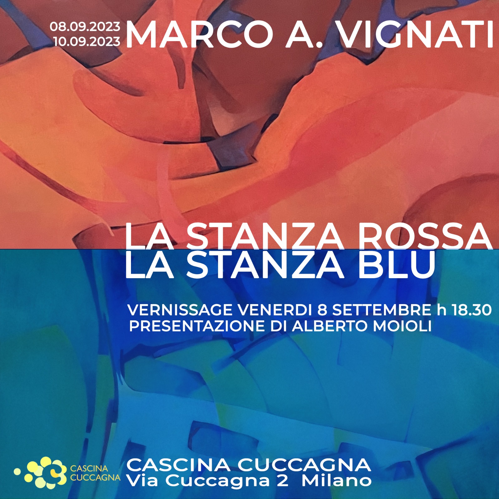 Sarà inaugurata alle 18.30 di venerdì 8 settembre 2023 la mostra personale “La stanza rossa, la stanza blu” dell’artista Marco A. Vignati presso le caratteristiche sale di Cascina Cuccagna di Milano.