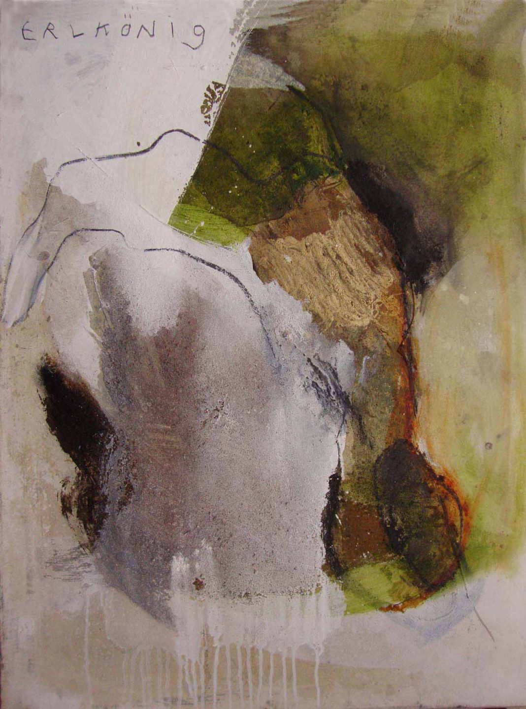 Dorigatti segue la struttura della ballata. Nell’arco di tempo “a-temporale” tra inizio e fine, l’artista si eclissa nella sua qualità di Io narrante affinchè la visione dell’accaduto possa prendere forma e l’inconscio si manifesti. Resta quindi fedele a Goethe che cede a sua volta la scena notturna alle sue figure, al loro drammatico e sempre più serrato dialogo. Nelle opere della Dorigatti le voci si inseguono, si accavallano, fino al punto che le distanze si annullano, i timbri si confondono e figure si amalgamano. Il padre è il Re degli Elfi. Il fanciullo la sua vittima.