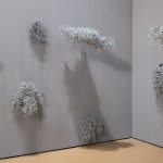 In questo contesto si inserisce GARGOFANIE, un’indagine poetica e materica sulla soglia, sul confine tra opposti – pieno e vuoto, interiore ed esteriore, concreto e immaginario. Il titolo richiama le garguglie medievali: creature liminari nate per espellere l’acqua dagli edifici, divenute figure mitologiche a metà tra funzione e mistero. Come le garguglie, le opere di Levo Rosenberg emergono da una tensione tra distruzione e rigenerazione, realizzate a partire da lastre radiografiche decostruite e rielaborate in filamenti che diventano trama, immagine e linguaggio.