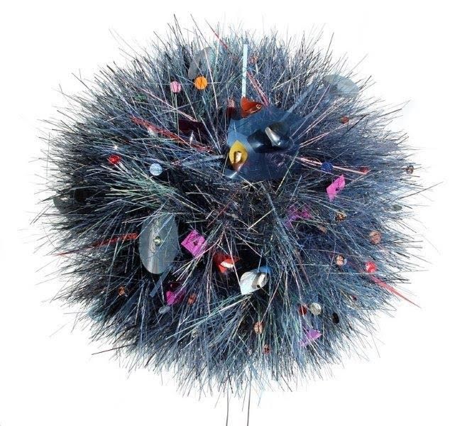 coniche colorate, immagini su acetato, protuberanze floreali, frammenti circolari di