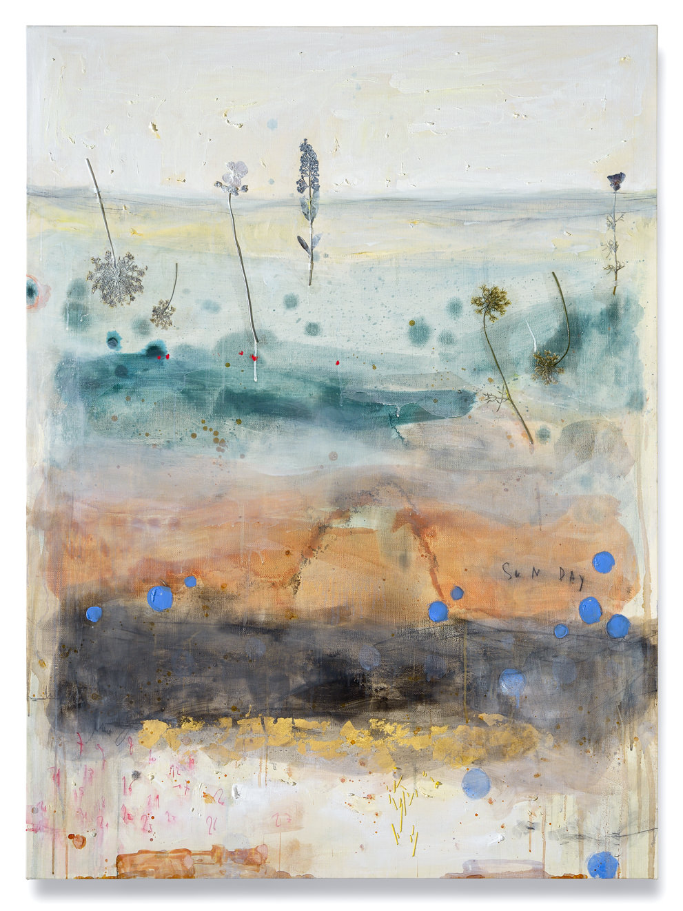 Tele di grande e piccola dimensione tracciano quel viaggio che l’artista percorre quotidianamente nella sua riflessione sulle cose e sulla realtà. Ampi spazi di colore e assenza di forme definite segnano una evoluzione nella produzione di Margherita Martinelli, che si è concentrata nell’ultimo anno sugli aspetti della luce all’interno delle giornate, tracciando un sentiero che attraversa il più ampio spettro di sfumatu-re dal giorno alla notte. Non mancano le opere di anni recenti in cui i simboli – l’abito, la barca, la libellu-la, le scarpette – hanno segnato nelle tele significativi momenti del viaggio fisico e mentale dell’artista.