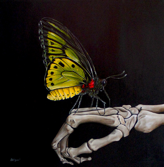ETERNO EFFIMERO parla del ciclo di vita – morte, attraverso la rappresentazione simbologica di farfalle, teschi ed ossa nei dipinti di Daniele Liguori e la scenografica installazione di farfalle in porcellana e luminose sfere in ceramica intagliate e dipinte di Margherita Vellini.
