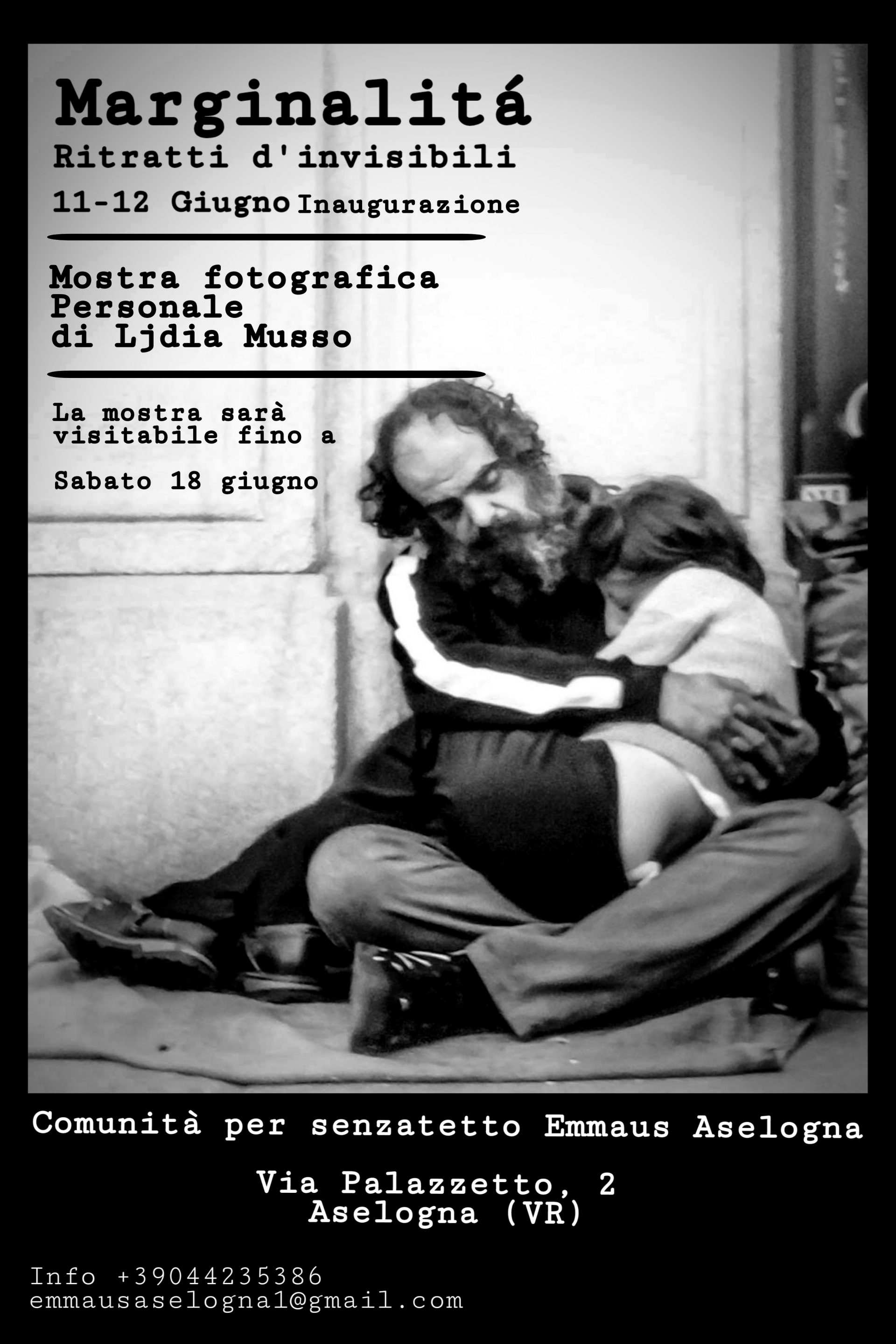 In occasione della festa di inizio estate Emmaus Aselogna ripropone la mostra di Ljdia Musso Marginalita’, Ritratti Di Invisibili, mostra personale di fotografia documentaria di Ljdia Musso.