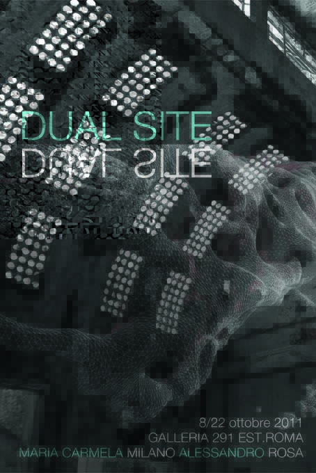 La mostra, ovvero le mostre si manifestano senza visione, sono sottratte volontariamente all'occhio indagatore del fruitore. Il risultato del lavoro, l'oggetto-feticcio costruito in “bottega” viene svuotato del suo valore semantico di “contenuto” (opera esposta) nel tentativo d'instaurare un confronto con il suo “contenitore” (luogo espositivo). DualSite vuole “mostrare” un procedimento di alterazione del rapporto fra contenitore e contenuto riflettendo sul valore dei ruoli a loro attribuiti nel sistema dell'arte contemporaneo. La “documentazione” esposta in galleria rappresenta un continuum temporale fra la prima mostra, installata in un luogo non espositivo con opere già esposte in altre occasioni, e una seconda mostra che presenta solo bozze e modelli e che potrebbe essere il presupposto di un lavoro/ o più lavori da sviluppare successivamente.