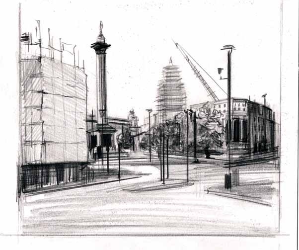 Tutto è chiaro, tutto è evidente ed ordinato in queste viste cittadine che, per dirsi vive, non hanno bisogno della presenza umana. Non ci si faccia ingannare dai soggetti, non ci si soffermi al semplice riconoscimento di alcuni angoli di città più o meno personalmente visitate o sulle curve di alcuni visi più o meno noti; si vada a fondo e ci si lasci perdere in quell’ordinatissimo groviglio di linee che disciplinano spazi e volumi. Allora ci si accorgerà di come l’immagine sottenda il medesimo calcolo equilibrato di forze, la medesima pacata tensione di certe immagini di città ancor oggi visibili in superstiti cassoni del nostro primo Rinascimento sino a certa velocità di tratto ravvisabile nelle città che salgono del nostro primo Novecento (Elvio Zentile, tratto dal catalogo della mostra).