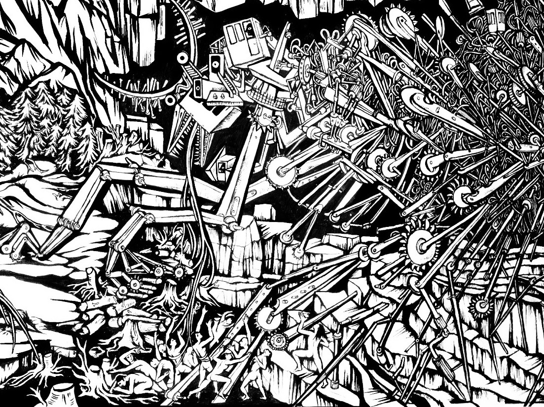 Ispirata alla Città invisibili di Calvino, la mostra Anatomia di un collasso, trova il suo fulcro in una potente installazione murale che, mostrando lo spaccato di una città, ne rivela l’anima convulsa e le interne dinamiche di alienazione, sfruttamento, accumulazione violenta e irrefrenabile, tracciando la traiettoria che condurrà ad un’implosione annunciata.