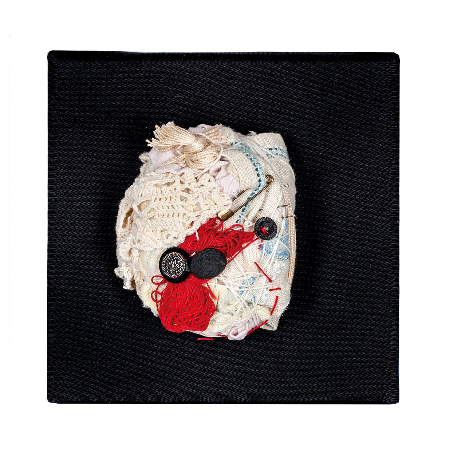 Piccole Crisalidi e piccole Formiche, del tutto somiglianti alle opere più note e apprezzate dell’artista, dove stoffa, fili, disegni per intaglio del cotone, bottoni e spille si legano e aggrovigliano a creare piccole “raccolte” che la formica Serreli condivide in anteprima con il pubblico nuorese.