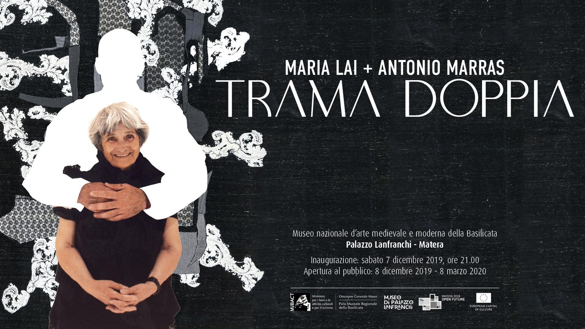 Dall’8 dicembre 2019 all’8 marzo 2020 nel Museo nazionale d’arte medievale e moderna della Basilicata all’interno del seicentesco Palazzo Lanfranchi di Matera sarà aperta al pubblico la mostra Trama doppia. Maria Lai, Antonio Marras, coprodotta, organizzata e coordinata dal Polo Museale regionale della Basilicata, e dalla Fondazione Matera-Basilicata 2019, nell’ambito del programma culturale della Capitale Europea della Cultura.