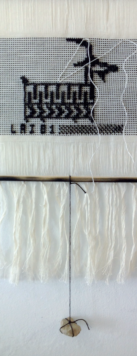 I calligrammi esposti in questa occasione rimandano a un lavoro prettamente femminile, quello del cucito,del filo che attraversa il tessuto apparendo e scomparendo. Come una scrittura in cui nulla si legge veramente ma ogni nodo, ogni sospensione, ogni sfilacciamento suggerisce il non detto che tutti ci portiamo dentro.