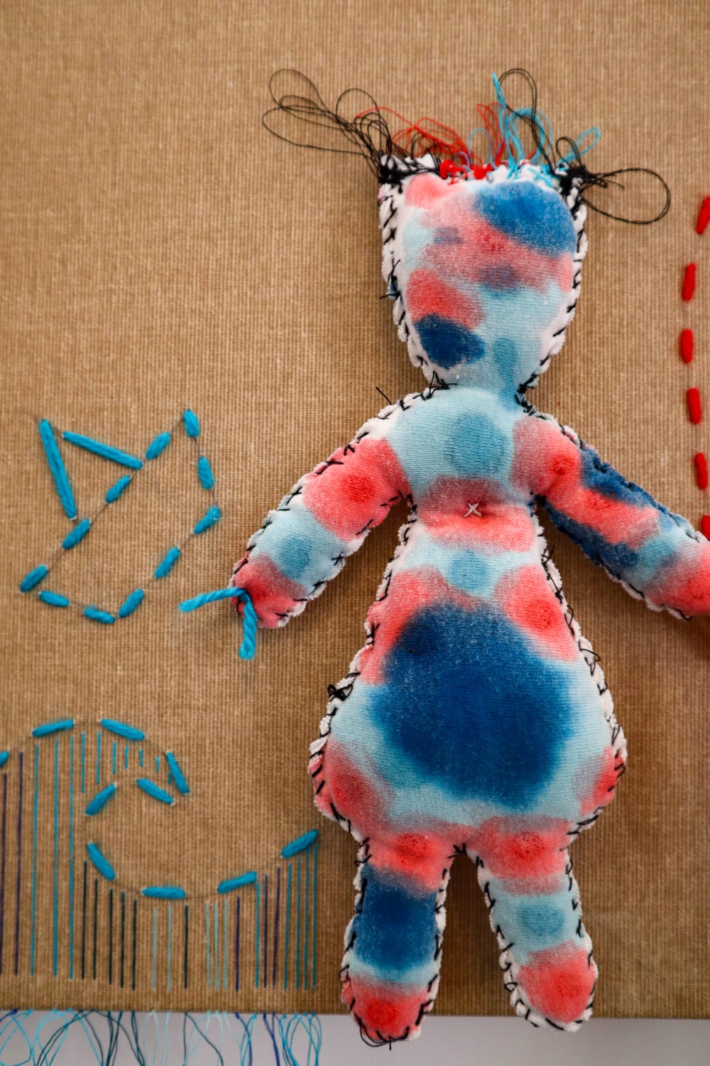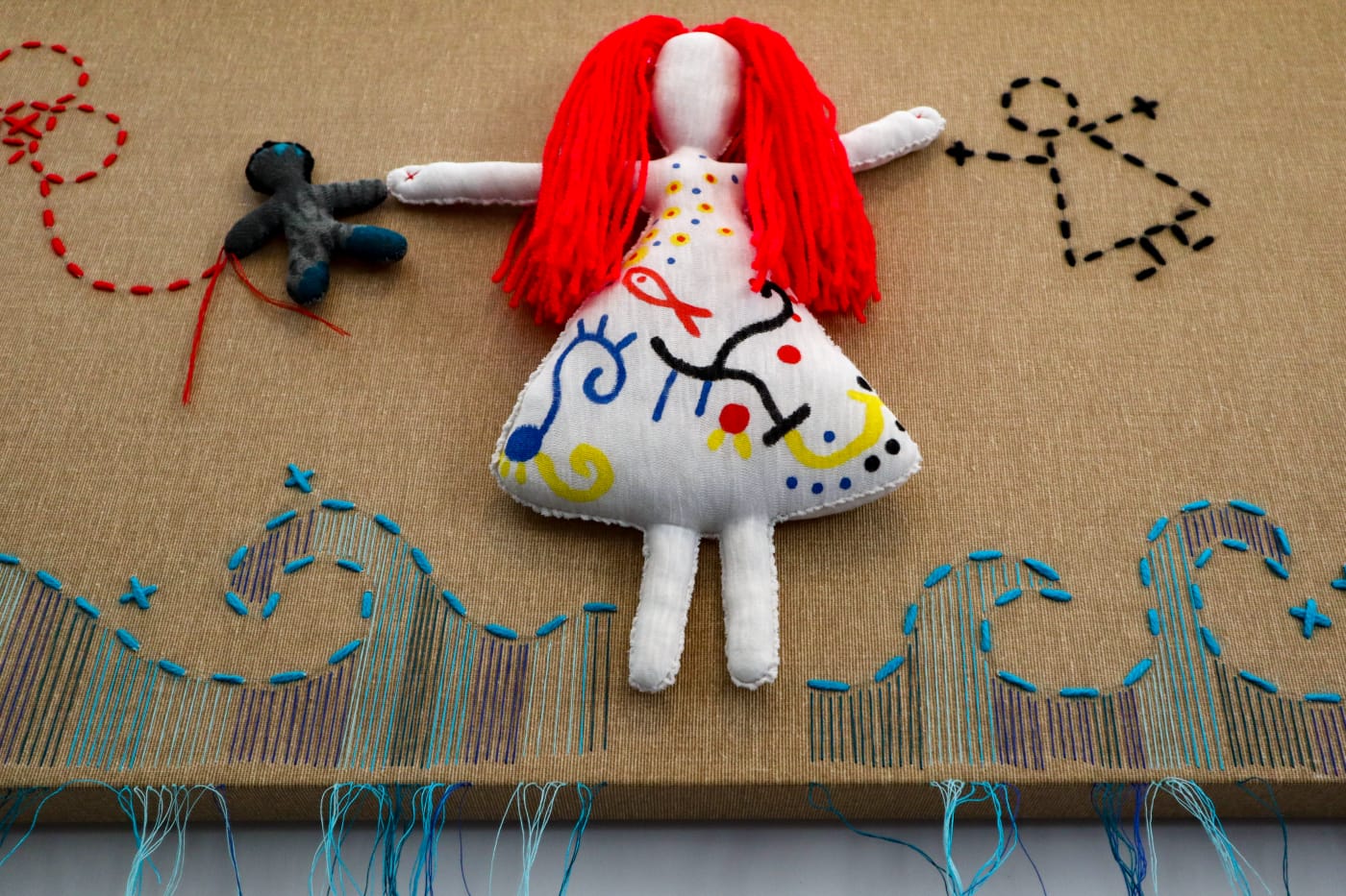 Continua così la ricerca del viaggio interiore e esteriore dell'artista Maria Manna che ancora una volta utilizza la visione “del gioco" attraverso la vita, con mescolanza emotiva e psicologica. La ricerca sembra sempre più un processo di “analisi" percettiva e sensoriale. Alle sue linee tratteggiate con fili di lana, artefici di personaggi e elementi di espressione favolistica si intrecciano tessuti e segni che prendono vita quasi come se fossero rilievi storici che alle radici dell'arte romana creano istantanee di avvenimenti o vere e proprie narrazioni simboliche. Un processo che si relaziona tra i suoi oggetti interni e tutte le vicissitudini di attacco e riparazione esterna. La necessità riparatrice è da sempre all'origine della creatività. Un viaggio in cui, questi ultimi anni, vengono trasformati in favole sentimentali dall'approccio visionario; alla valenza pedagogica e di gioco simbolico. Mondi immaginari che attivano e stimolano aree del cervello nel momento in cui le “bambole" realizzate, con tessuti di riciclo (Tra anni e vite) raccontano di vissuti non sempre facili e razionalmente comprensibili. L'inconscio che a tratti cerca luce nelle parti più consce. Il ruolo del bambino nella società e nel mondo sociale. Immagini che possono apparire caotiche e poetiche al tempo stesso. L'artista si emoziona ed emoziona. Mondi astratti ma pieni di figure che sembrano raccontarci storie che difficilmente le tele tendono a contenere. Ago e filo narratori importanti di temi che provocano forte riflessione.