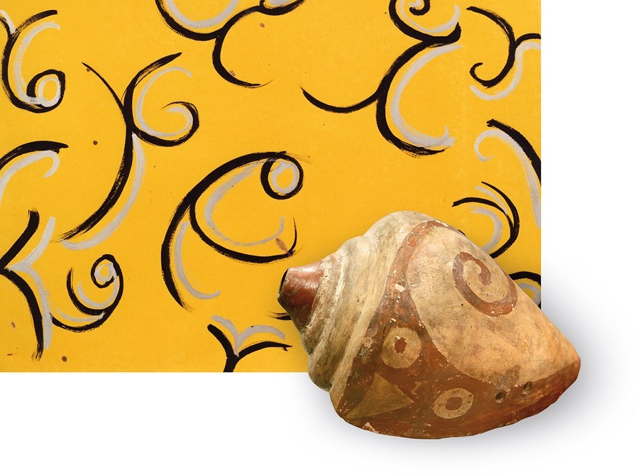 La mostra è basata quindi sull’abbinamento di oggetti del museo e di opere della Campagna, e la selezione degli oggetti del museo è stata effettuata tenendo conto non solo delle analogie, ma anche di sensazioni e impressioni che paiono legare inconsciamente oggetti provenienti da paesi lontani, spesso distanti anche nel tempo, e le opere di una artista contemporanea. Così, l’iconografia della conchiglia Moche riprende le piccole spirali di Primaria, gli occhioni degli antenati oceaniani dipinti su palma ricordano l’Occhio della Campagna, la porta di granaio africana si collega alla Porta e le spirali di Su carta richiamano i braccialetti africani in metallo. (Sottili impressioni di Monica Farneti)