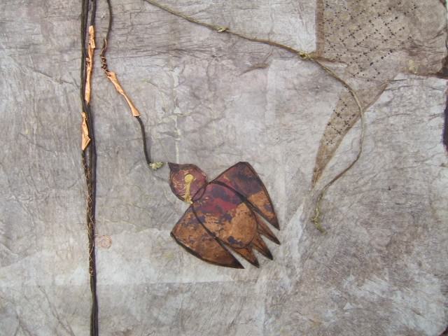 L’opera “Fil rouge su tessere oro”, presente nella mostra “OROROSSORAME”, merita particolare attenzione: l’impianto compositivo prende spunto ed è sostenuto dall’ultima produzione dell’artista che ha investito nelle qualità cromatiche del rame, dell’oro, del rosso e del nero. “Fil rouge su tessere oro” è impostato a continuare la produzione ultima che accoglie, su uno sfondo lattiginoso e frastagliato, battenti tessere d’oro attraversate da un filo rosso, indirizzato a continuare un sentiero palpitante, a richiamo di vita in una luce divina. La recentissima redazione pittorica dell'artista accoglie accostamenti di sacro e profano; si comprendono le vertigini del nostro tempo e, nel contempo, tutto è rimandato alle dimensioni mitiche di tempi antichi. Le metabolizzate, significative, leggere tessere dorate formano una “texture”, su cui scivola un ritmico rosso sentiero, che esplicita un’essenza calamitante.