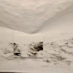 Un progetto site specific fatto di disegni murali come visioni estese verso l’orizzonte ma anche sott’acqua, di barche galleggianti e solitarie, di proiezioni e di versi che sembrano emergere dalle arcate dello spazio e che ci portano la sua voce come in un respiro a suggerire luoghi intangibili.