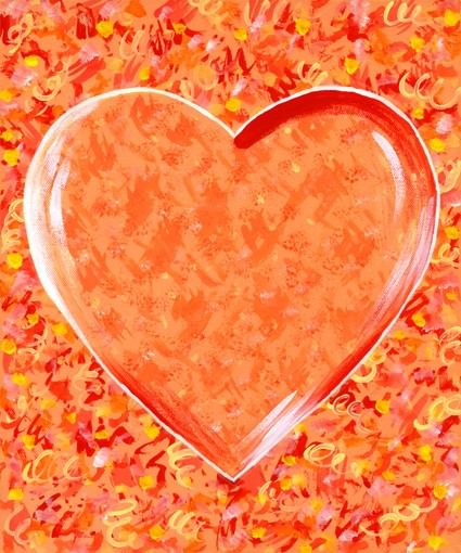 Opere ispirate ai colori dell’arcobaleno racchiusi dentro la forma del cuore, similmente alle sete, che dai quadri traggono ispirazione: foulard e cravatte, accessori dell’abbigliamento che vengono portati sul cuore.