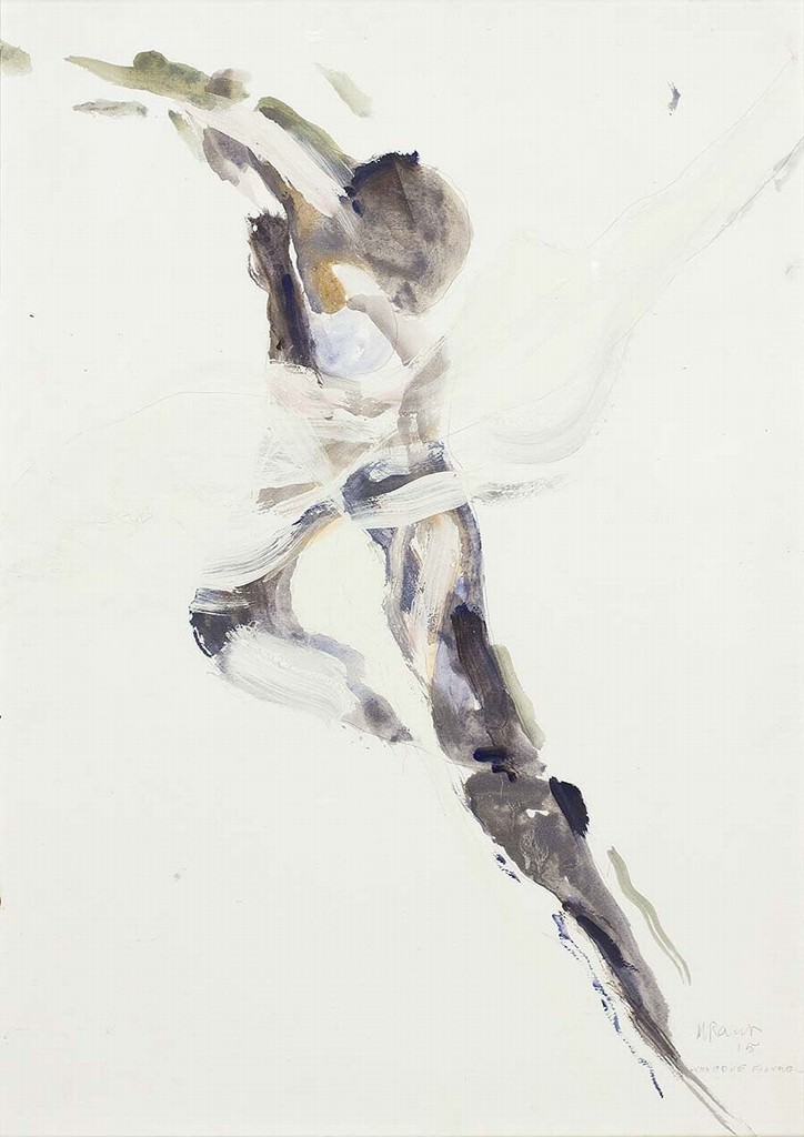 La cultura classica e il racconto dei miti costituisce la base della sua ricerca pittorica nella quale si introduce, nel corso degli anni, la tecnica del pastello secco, che gli permette effetti di trasparenze, luci che emergono dal fondo e una stesura più veloce, con cui creare movimenti di largo respiro. Per Raciti, scrive la curatrice in catalogo: È sempre un ricercare cosa c’è “oltre” il mistero interiore, profondo, e appare significativo il suo lavorare in cicli: è un ricercatore che non lascia una traccia appena scoperta, che lavora su questa, che si isola, che ha bisogno di silenzio. Le opere in mostra rivelano una nuova espressività in cui tutti i segni dei cicli precedenti sembrano aggregarsi in queste visioni volatili in uno spazio, sempre chiaro, animato e palpitante di vita, che le avvolge. Ciò che possiamo cogliere è sempre parziale, frammentario: quei corpi che ci appaiono testimonianza di fuggevoli incontri o anche solo di fortuiti contatti si delineano con un effetto di colore e di movimento, ma immediatamente scompaiono inghiottiti da quello spazio incolore, vuoto, ma ricco di significati che in esso sono nascosti. Ritornano i colori azzurro liquido, giallo ocra, verde acqua e sfumature di turchese con un senso di leggerezza, di trasparenza contrapposti ad una forma scura che costituisce un contrappeso ma con la quale dobbiamo fare i conti.