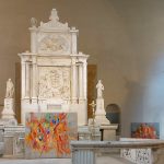 La mostra unisce antichità e modernità, attraverso il dialogo tra mito e vita vera. Quadri, carte e maschere prendono forma a partire dalle suggestioni dei resti presenti nella Chiesa. I colori esplodono in frammenti di corpi cadenti e rovine che, avvolti da pennellate di vento, diventano pura arte.