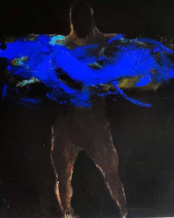 Aprendo gli occhi scopriremo un Cavaliere blu, pronto a gettarsi oltre gli aculei della palizzata del castrum, munito unicamente di spada e corazza ma colmo di lealtà, coraggio che riscontriamo nei gesti perentori e rapidi del pennello a sfidare la tela senza mai che ne tradisca acutamente la dolcezza e l’incontro con lo spirito che rende nelle opere di Mariano una voluta sensualità.