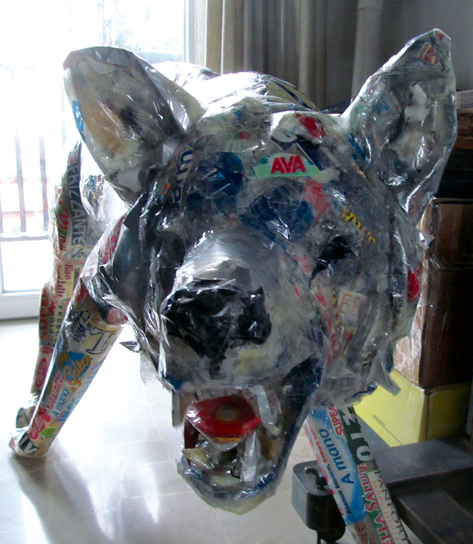 Questa nuova esposizione, curata da Arianna Sartori, diventa l’occasione per approfondire il lavoro di questo artista affermato in Italia e all’estero. Tra I “plasticoni” esposti: cinghiale, bufalo, canguro, sileno, volpe, lupo, aquila e 8 colombe…