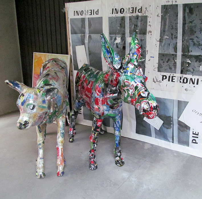 Dimensione della crisi. Anima obsoleta. Diciassette opere doppie, tecnica mista: olio e plasticoni.