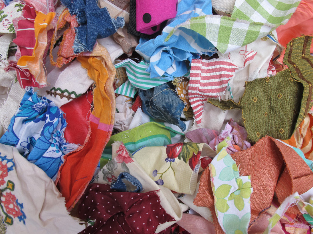 Il potere evocativo delle stoffe ha un eco di proustiana memoria: ciascuno può ritrovare parti di se stesso e vagare con la mente verso tracce e sensazioni sopite nell’ inconscio, ma non per questo dimenticate, bloccate. Un’anima in fermento, creazione umana perennemente “in progress” e mai finibile.