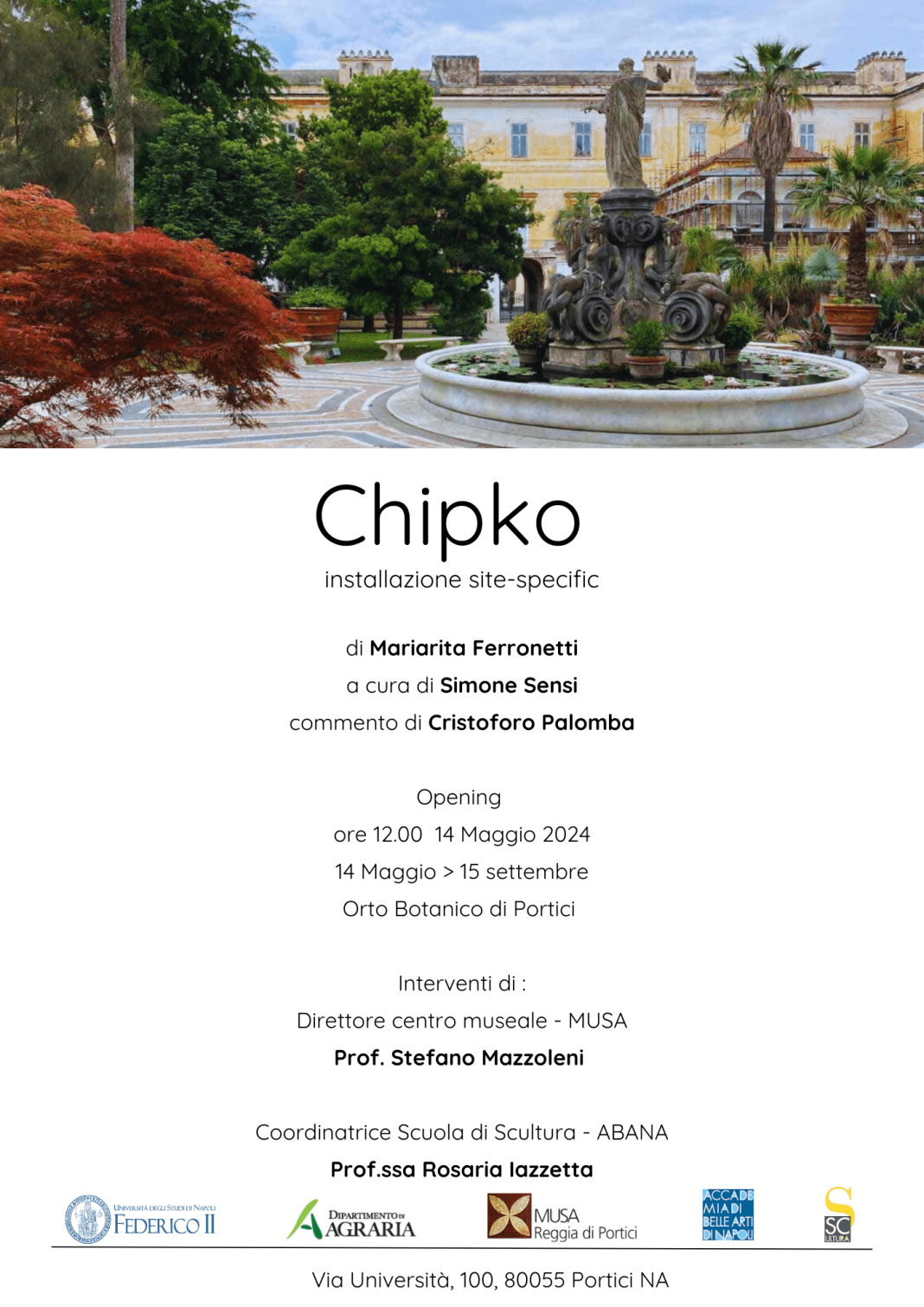 14 Maggio 2024, Opening il 14/05/2024 alle ore 12:00 all'interno dell'Orto botanico di Portici