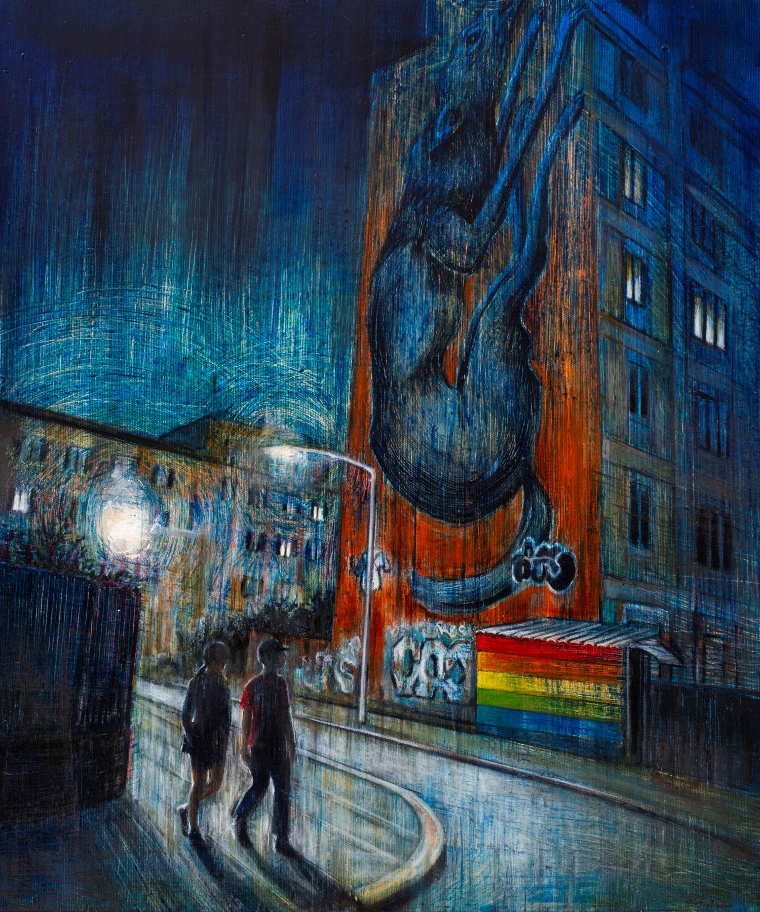 Come suggerito dal titolo, il tema centrale dell’esposizione sarà, nel solco dell’ormai nota sensibilità dell’artista, un percorso tra le atmosfere notturne della città, luogo che, nelle luci e nei gesti di Mariarosaria Stigliano, diventa oggetto di sogni e allo stesso tempo soggetto sognante.