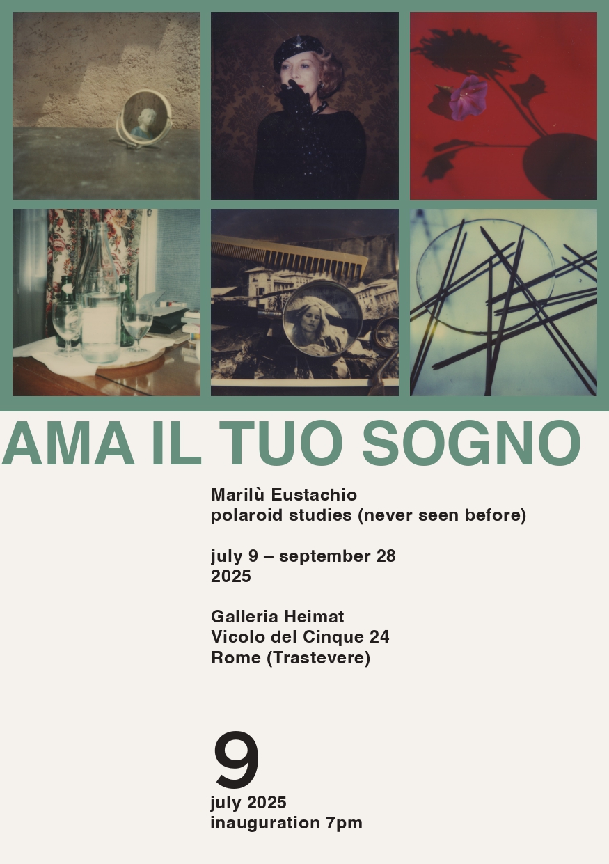 L’esposizione “Ama il tuo sogno!” presso la Galleria Heimat è la prima grande mostra interamente dedicata all’opera fotografica in formato Polaroid di Marilù Eustachio, artista italiana tra le voci più singolari del nostro secondo Novecento.
