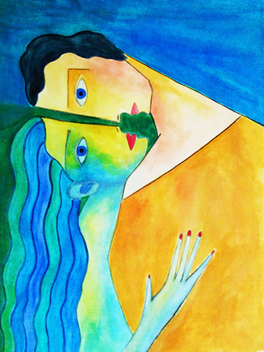 Ricerca coraggiosa già presente nella mostra precedente del 2021, "Tra amore e rivoluzione, lettere di Gramsci", in particolare nei quadri esposti: "Uguali e diversi e "Il bacio" L'artista ancora una volta, coglie la dimensione del "lasciarsi andare" riportato sui volti degli amanti, fusi nel colore, negli occhi degli amanti, nei capelli di lei onde che arrivano fino al mare, ci conduce come in una sequenza in quello che accade tra un uomo e una donna quando è desiderio, quando è sessualità.