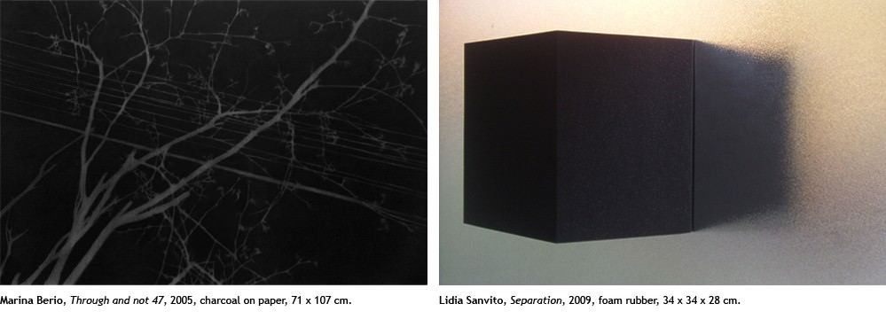 L’incontro delle due artiste, assai diverse per formazione e percorso, sviluppa una serie di rimandi sottili tra i lavori dell’una e dell’altra. Entrambe condividono un rigore formale mai abbondonato con un segno compatto e corposo e una predilizione per una materia arsa, combusta. Il carboncino, la gomma, la ripetizione e la programmazione impongono a entrambe una griglia metodologica che le sostiene e ne valorizza l’espressività più intensa e genuina.