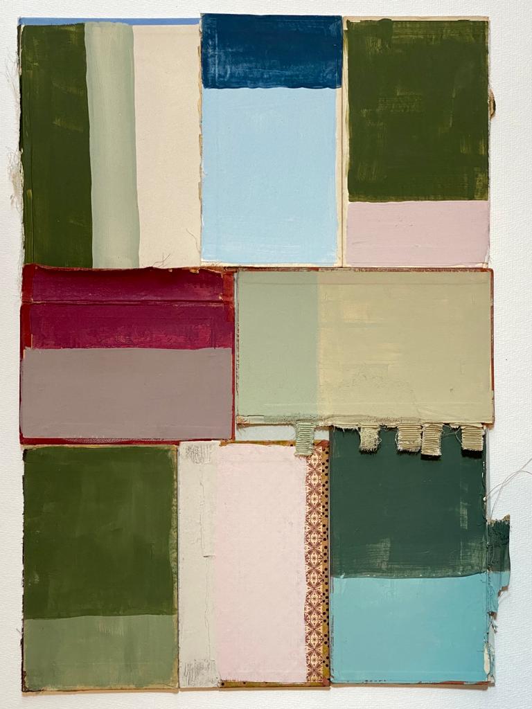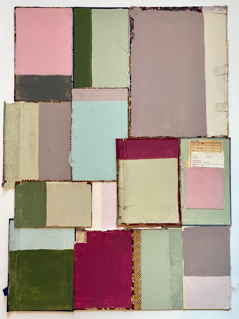 “Mi piacciono le pagine ingiallite, il modo in cui le copertine si sbiadiscono e si sfilacciano e le brossure si segnano con le pieghe. Tolte dal loro ambito originale, queste funzionano come texture e forme, come una sorta di codice, di pezzi di memoria, di strati, di tracce. La serie esposta è, quindi, una sorta di archivio in divenire, perché cercando delle tracce, ho la sensazione di lasciarne sempre di nuove”.
