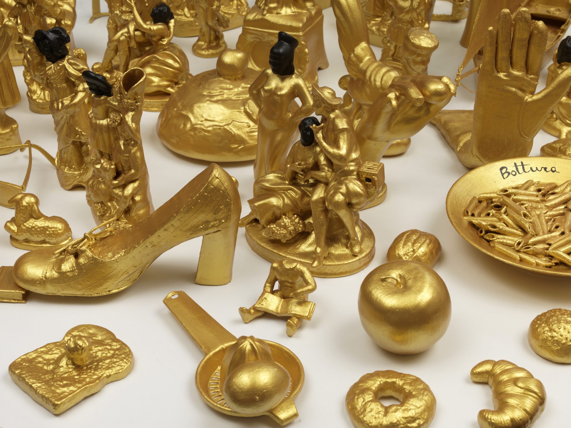 Sagona ci fa calare in questo mondo passo dopo passo attraverso le sue tele, dove avviene un’inversione di ruoli: chi risiedeva in Paradiso viene gettato all’Inferno, e viceversa chi era confinato all’Inferno riesce a comprarsi la propria indulgenza e a scalarne i gironi fino ad arrivare prossimo a Dio. Tuttavia è nella rappresentazione del paradiso terrestre che si realizza il passo successivo: qui non assistiamo più ad un’inversione, non ci sono più due luoghi dove poter confinare e separare i meritevoli dai peccatori, ma tutto vive nello stesso luogo, tutto si confonde.
