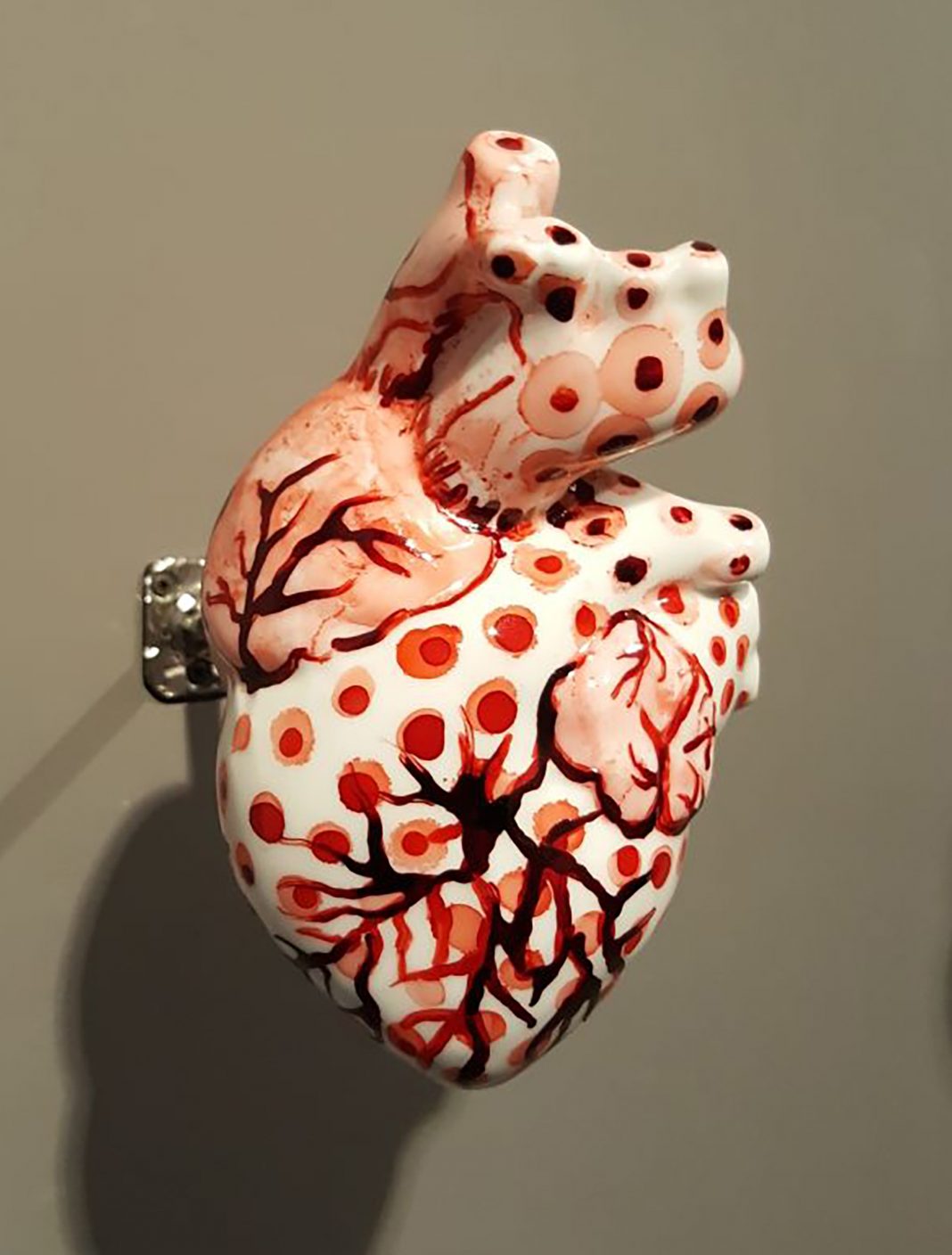 Un corpus di opere dove il linguaggio del biologico e del biomorfico crea una dicotomia strutturale del rapporto tra la vita e la morte in un universo metaforicamente simbolista, in cui brutalità e bellezza si fondono nell’analisi di culture arcaiche e contemporanee. Il lessico poliglotta dell’artista, emerge nella realizzazione di opere scultoree e tecniche miste su carta: se, nel primo caso, la Vargas interpreta il tema arcaico della Vanitas nella realizzazione di teschi e cuori in porcellana, impreziositi da reticolati grafici e macchie di vernice dalle sfolgoranti cromie, come simbolo non più della caducità ma della rinascita spirituale, nelle opere su carta, l’artista interpretando il tema della morte come azione cosciente di un’epurazione che genera un progressivo cambiamento, rappresenta simboli del sacro e del profano dai toni argentei su sfondo nero, enfatizzandone l’alone enigmatico e misterico e conferendone un significato escatologico pertinente all’interpretazione del destino ultimo dell’uomo e del proprio universo interiore.