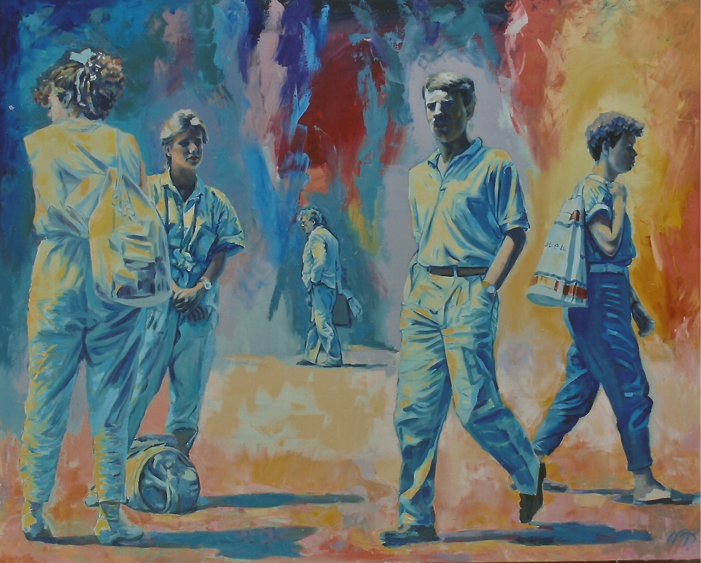 tratti di giovani ragazze messe sotto scacco dalla moderna tecnologia (Ragazze con cellulare, 2017) o di tragedie e tensioni sociali della nostra storia più recente, come uomini, donne e bambini che scappano dalle guerre e dalla povertà arrivando sulle nostre spiagge (Spiaggiato, 2018), o come le guerriglie urbane (Un momento di questo secolo, 2021).