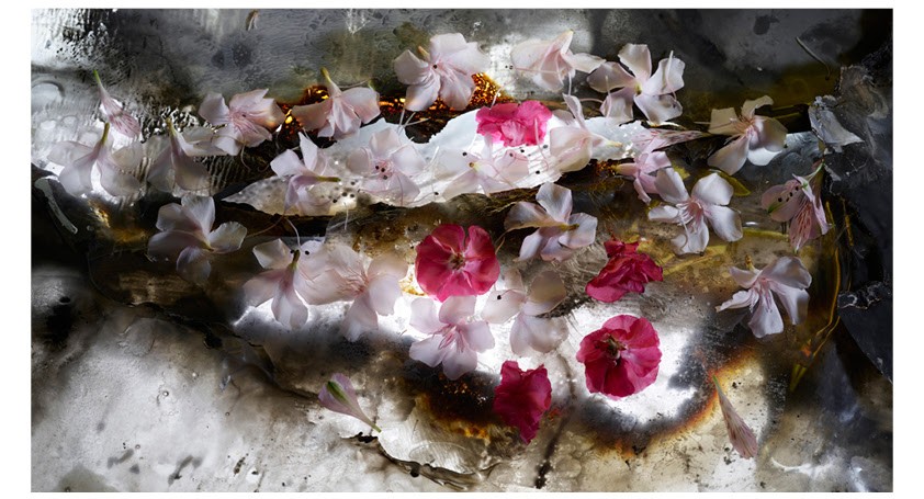Nelle sue fotografie gli attori di questo racconto sono infatti solo i fiori e la loro infinita, caduca bellezza. Fiori e bellezza che, scorrendo nel delirante fiume di un nulla universale, s’infrangono nel loro stesso dolore.