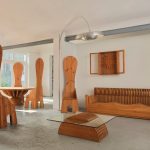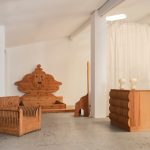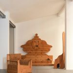 Le forme ideate da Ceroli poi giocano sul continuo richiamo all’arte antica così come alla cultura pop: sono oggetti che rimandano a un qualcosa che si conosce già, accrescendo così il senso di confusione metafisica di chi li guarda. Le sedie a spalliera sono il mobile che più ricalca l’immaginario dechirichiano, nelle loro forme allungate si possono riconoscere i manichini tanto cari al pittore greco. Ci sono poi un tavolino basso con un piano in vetro e due tavoli con una decorazione che riproduce una rosa dei venti da cui emerge una sacralità di proporzioni simile a quella del mondo classico o medievale, in cui si riconosce anche l’abilità tecnica dell’artigiano che costruisce mobili in cui la levigatura del legno e il suo perfetto incastro sono fondamentali. Infine le cassettiere, i divani e la poltrone presentano giochi di pieni e di vuoti dove la materia lignea vibra e il letto, con la sua decorazione antropomorfa, richiama i grandi arredi antichi. In mostra anche una scultura in legno che rappresenta un sole fuori dalla finestra, un gioco in cui verità e finzione si incontrano.